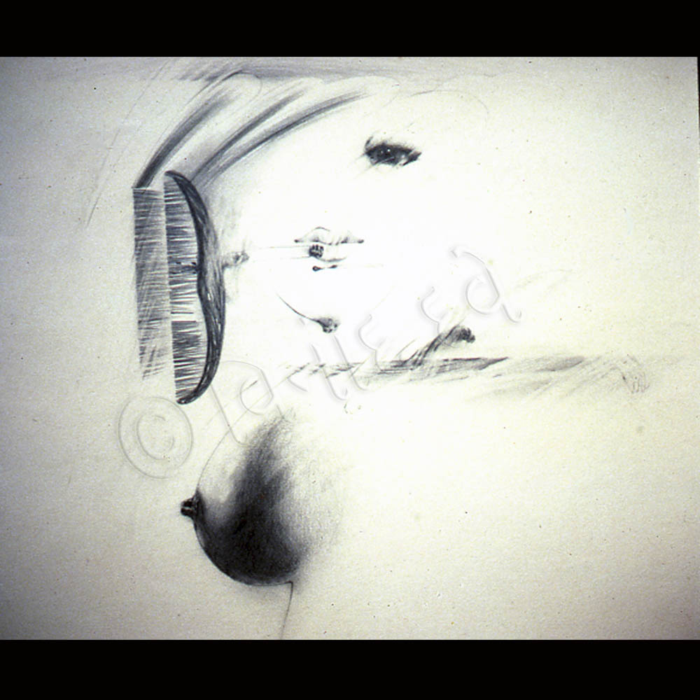 Vinod Dave’s other recurring theme is the female nude. Depicted in varying degrees of delineation – sensuously graphic and exquisitely modeled as in the drawings – or transposed and transformed as in the paintings where figure and prop are surreal presences – the nude is the personification of the sleep world, sleep as a sexual encounter and sleep as the drama in the dream.